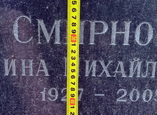 Для того, чтобы точь-в-точь скопировать надпись, мы промерили уже находящийся на памятнике текст, а также взяли размеры фотокерамики. Руководствуясь этими данными, мы сможем изготовить идентичные трафареты и портрет.