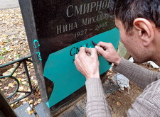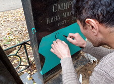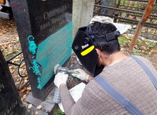 Последним этапом работы стала наклейка фотокерамики на памятник и обновление потускневших надписей на обоих надгробьях.