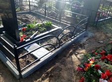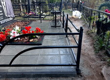 Клиент обратился к нам с просьбой уложить территорию могилы бетонной плиткой, а также оградить периметр места захоронения небольшим бордюром. Осмотрев участок, мы сразу же принялись за работу. На фотографиях ниже запечатлён внешний вид могилы на момент нашего первого приезда.