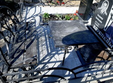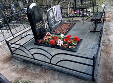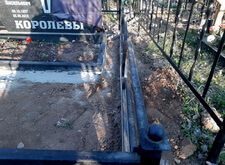 Первым делом мы установили периметр могилы, собранный из бордюрных пролётов. Для этого под оградой была выкопана неглубокая канава, позволяющая надёжно закрепить бетонные плиты в землю. Примыкающие к опорам ограждения блоки были немного подрезаны.