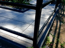 Далее мы покрыли участок бетонной плиткой, предварительно установив столик и лавочку.