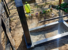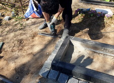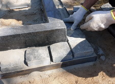 Для гарантии устойчивости памятника ему требовалось придать жёсткость каркаса по периметру. Бетонное основание смотрелось бы непривлекательно, поэтому с согласия клиентки мы решили уложить вокруг памятника один ряд брусчатки. Первым этапом работы был точный замер цветника с надгробьем.